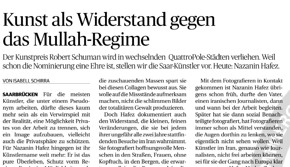 –Kunst als Widerstand gegen das Mullah-Regime /Saarbrücker Zeitung / By Isabell Schirra /17 November 2025