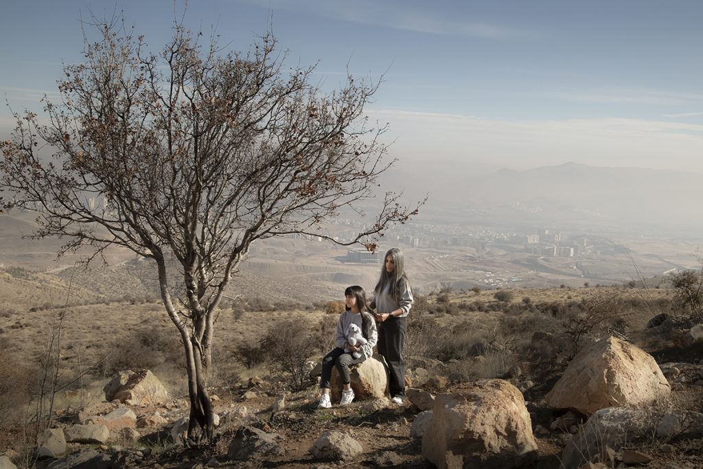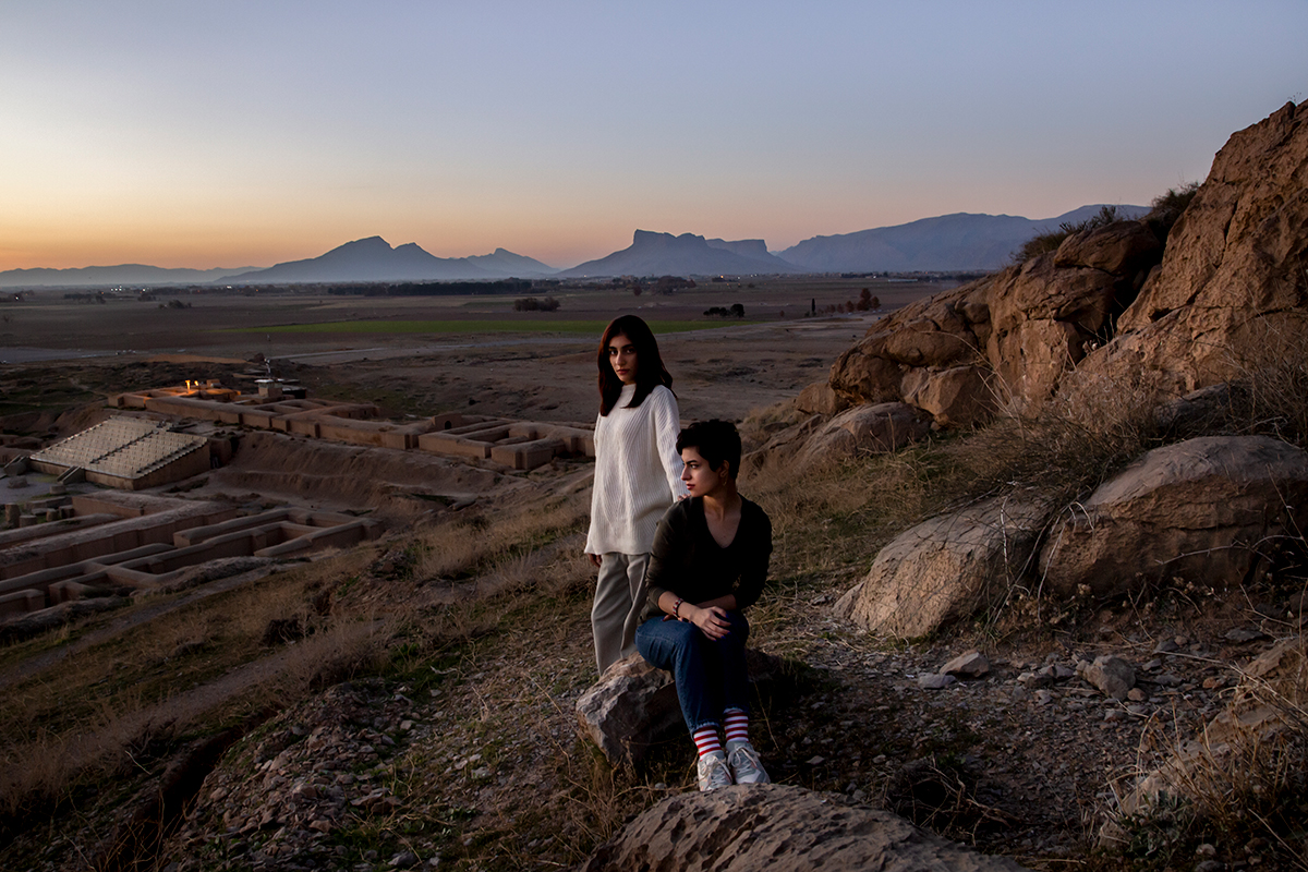 Two Iranian girls at the top of Mount Mehr in Persepolis, digitale Fotografie, Persepolis, Iran, 2024.