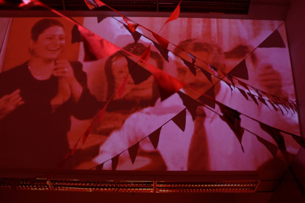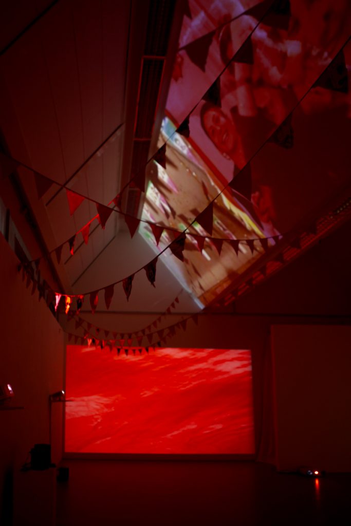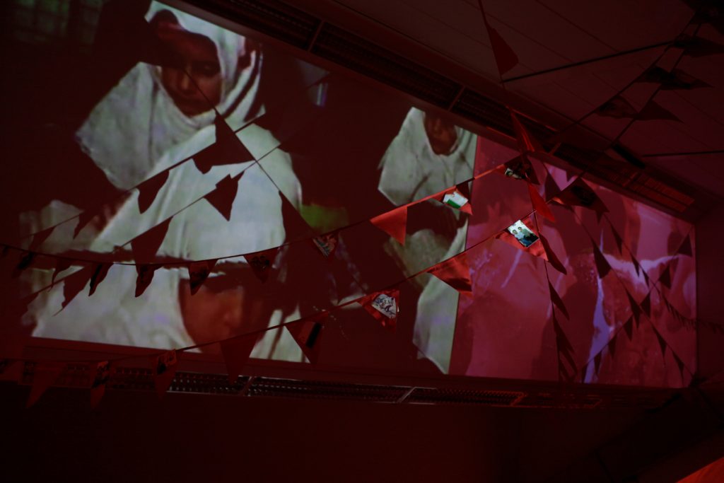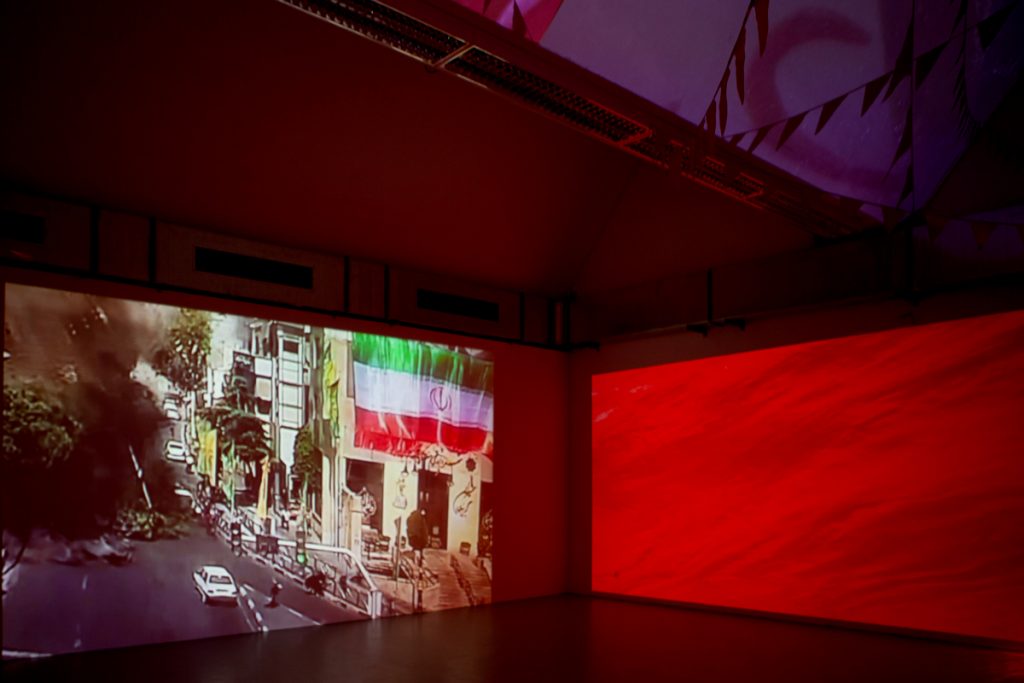 The installation consists of five videos presented through video projectors, as well as a photo installation featuring family photos and excerpts from my first year of school books. Personal footage from my private archive—including recordings from my first year of school in 1997 and my uncle’s wedding in Iran—is juxtaposed with images of political violence. Through this constellation, the work reflects on longing, trauma, memory and powerlessness, and examines how continuous exposure to mediated conflict, news saturation, and digital blackout permeates everyday life in exile.